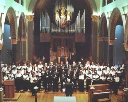 Egham Choral Society in a concert at the American School in Thorpe, Surrey. Joining us in the programme were soprano soloist Mary Clare Morris, pianist David Darby and choir soloists Evelyn Dodd and David Food, all conducted by Henry Macey.