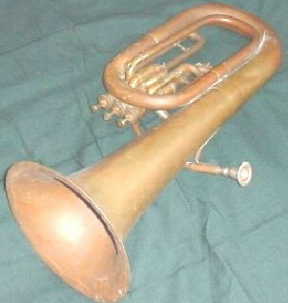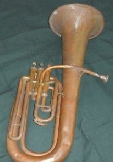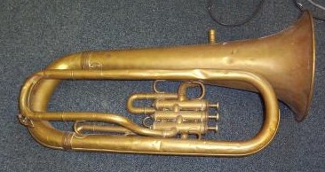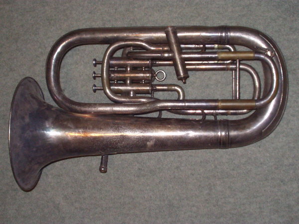 The instrument (brass) was rescued from a school collection and is very badly dented, but it plays beautifully!